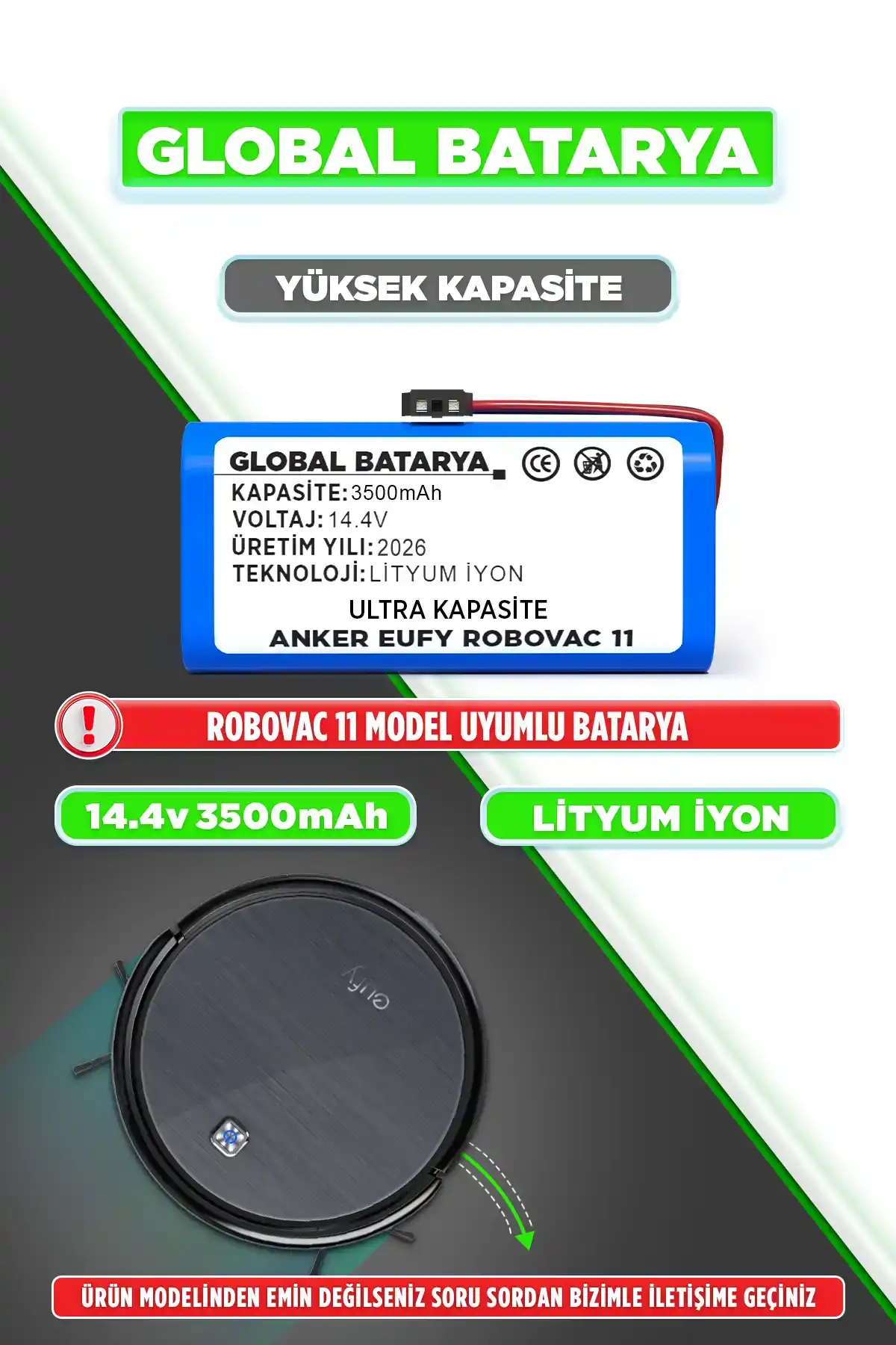 Anker Eufy Robovac 11 Uyumlu Robot Süpürge Bataryası 3500mAh Lityum İyon Pil Ultra Kapasite.