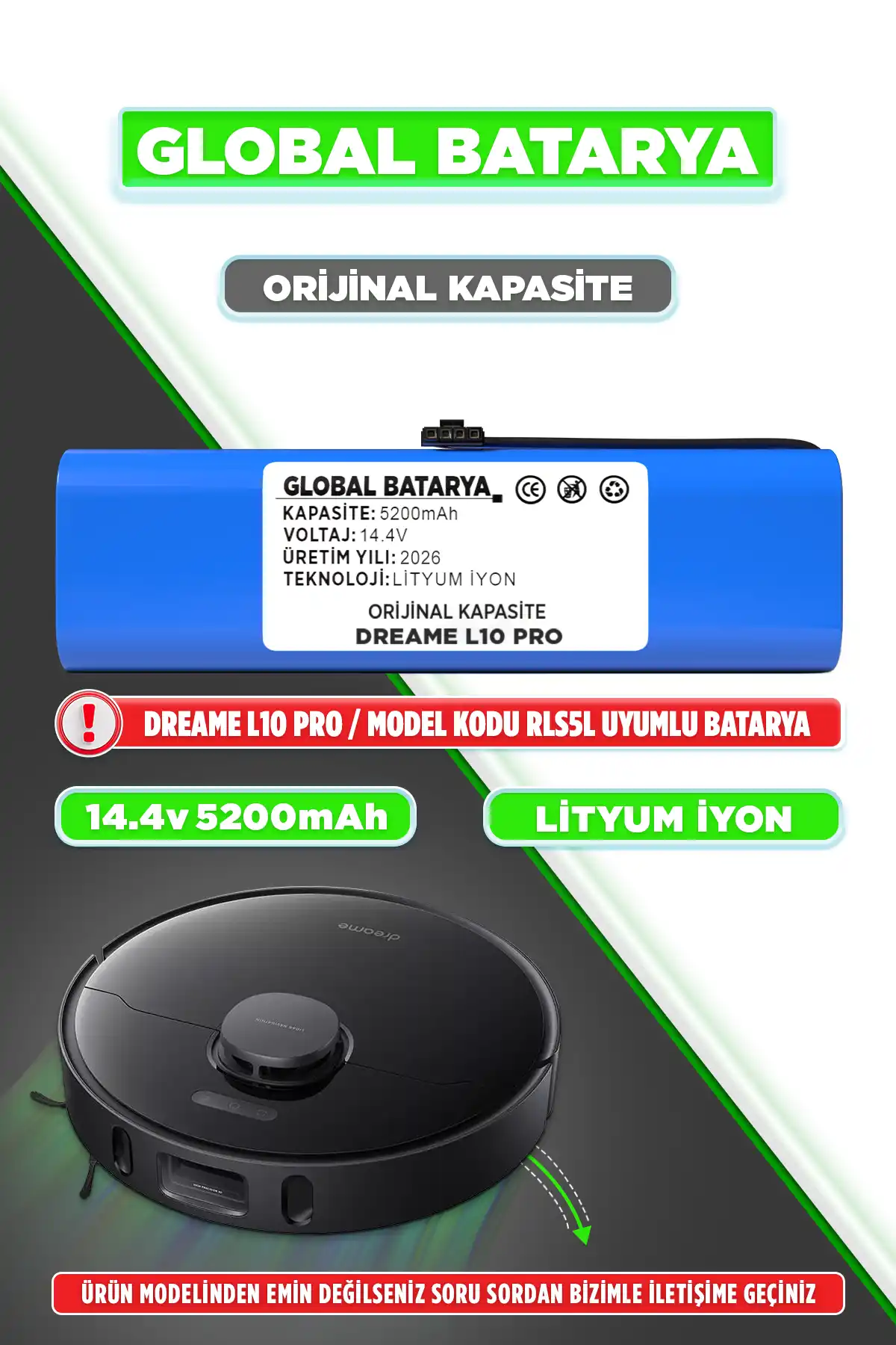 Dreame L10 Pro ile uyumlu bu batarya, gelişmiş lityum-iyon teknolojisiyle üretilmiştir. Dayanıklı ve uzun ömürlüdür. Tüm ürünler, firma tarafından test edilerek satışa sunulmaktadır. Bataryalarımız 6 ay garanti kapsamındadır ve garanti, satıcı firma tarafından sağlanmaktadır.