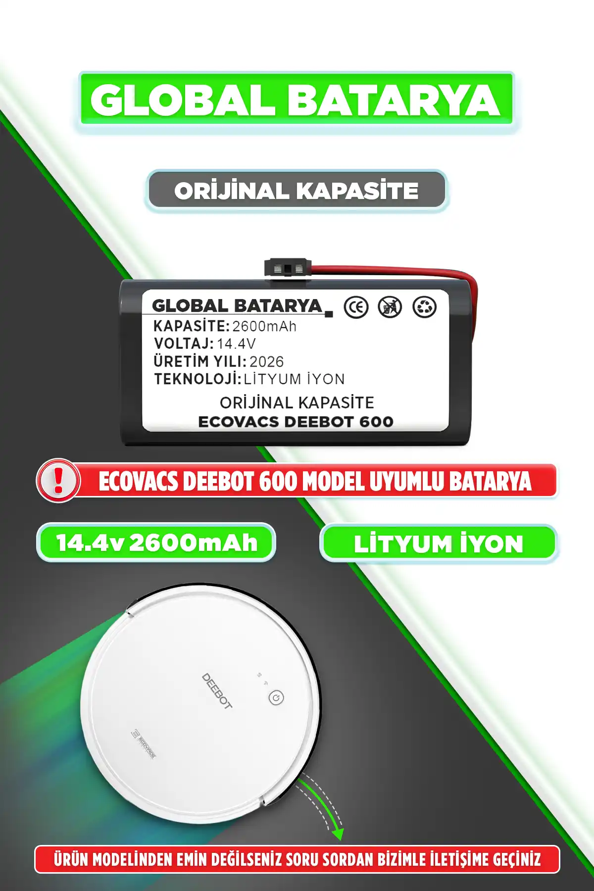 Robot süpürgenizin şarjı eskisinden daha mı çabuk bitiyor? Temizliği tamamlayamadan şarj istasyonuna mı dönüyor? Artık bu sorunlara son verme zamanı! Ecovacs Deebot 600 modeli ile tam uyumlu olarak tasarlanmış 2600mAh Li-ion batarya ile robot süpürgenizi yeniden canlandırın.