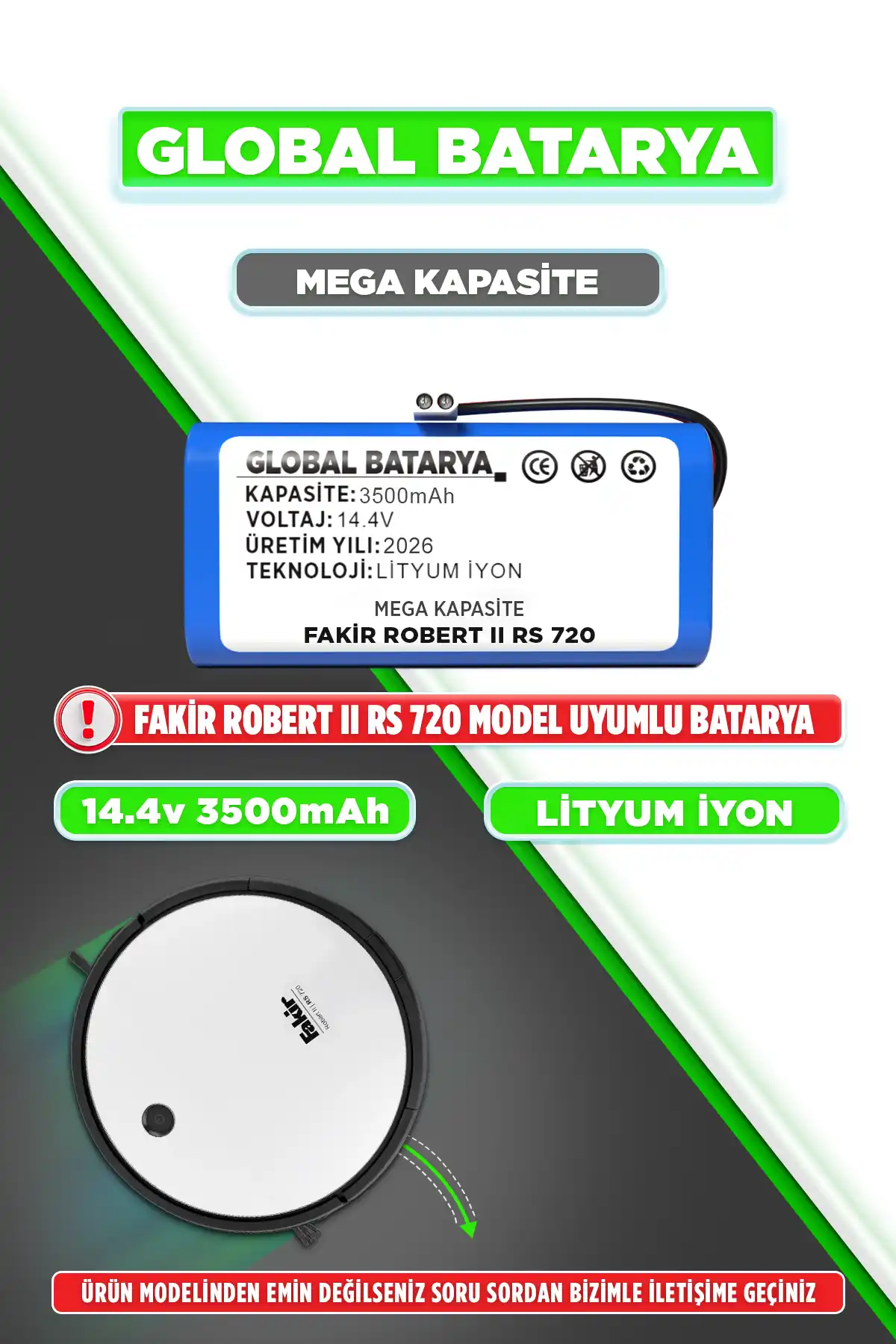Fakir Robert II Rs 720 ile uyumlu bu batarya, gelişmiş lityum-iyon teknolojisiyle üretilmiştir. Dayanıklı ve uzun ömürlüdür. Tüm ürünler, firma tarafından test edilerek satışa sunulmaktadır. Bataryalarımız 6 ay garanti kapsamındadır ve garanti, satıcı firma tarafından sağlanmaktadır.