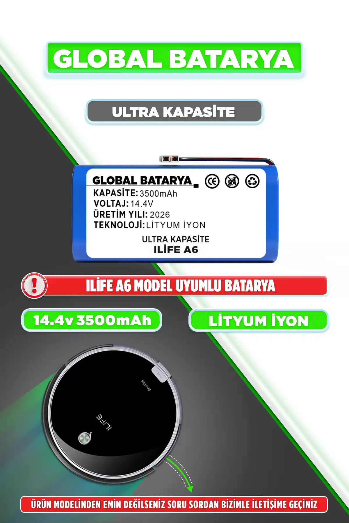 Ilıfe A6 ile uyumlu robot süpürge bataryası, gelişmiş lityum-iyon teknolojisiyle üretilmiştir. Dayanıklı ve uzun ömürlüdür. Tüm ürünler, firma tarafından test edilerek satışa sunulmaktadır. Bataryalarımız 6 ay garanti kapsamındadır ve garanti, satıcı firma tarafından sağlanmaktadır.