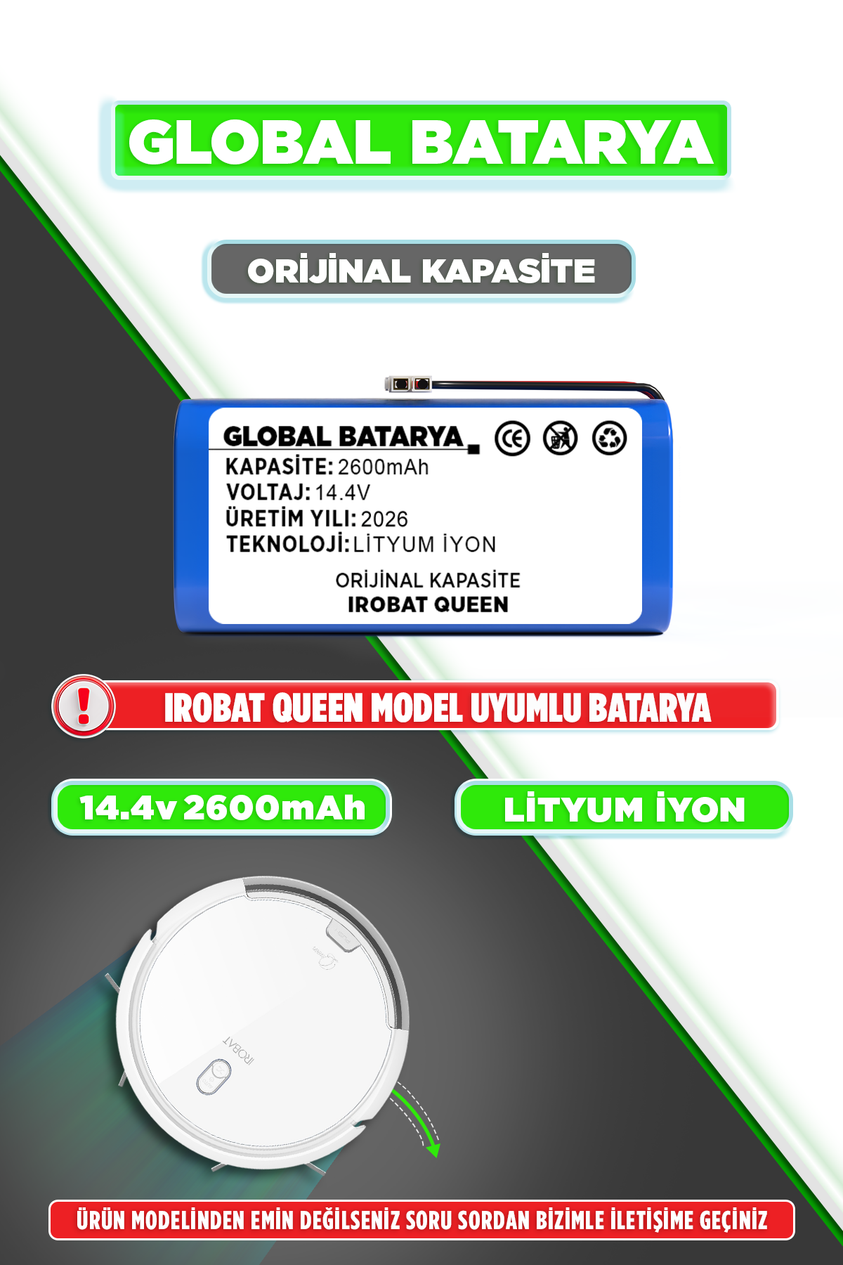 iRobot Queen modeliyle tam uyumlu 2600mAh orijinal kapasiteli Li-ion batarya, robot süpürgenizin performansını ilk günkü haline getirir. Yüksek enerji verimliliği ve uzun ömürlü hücre yapısı sayesinde kesintisiz temizlik deneyimi sunar.