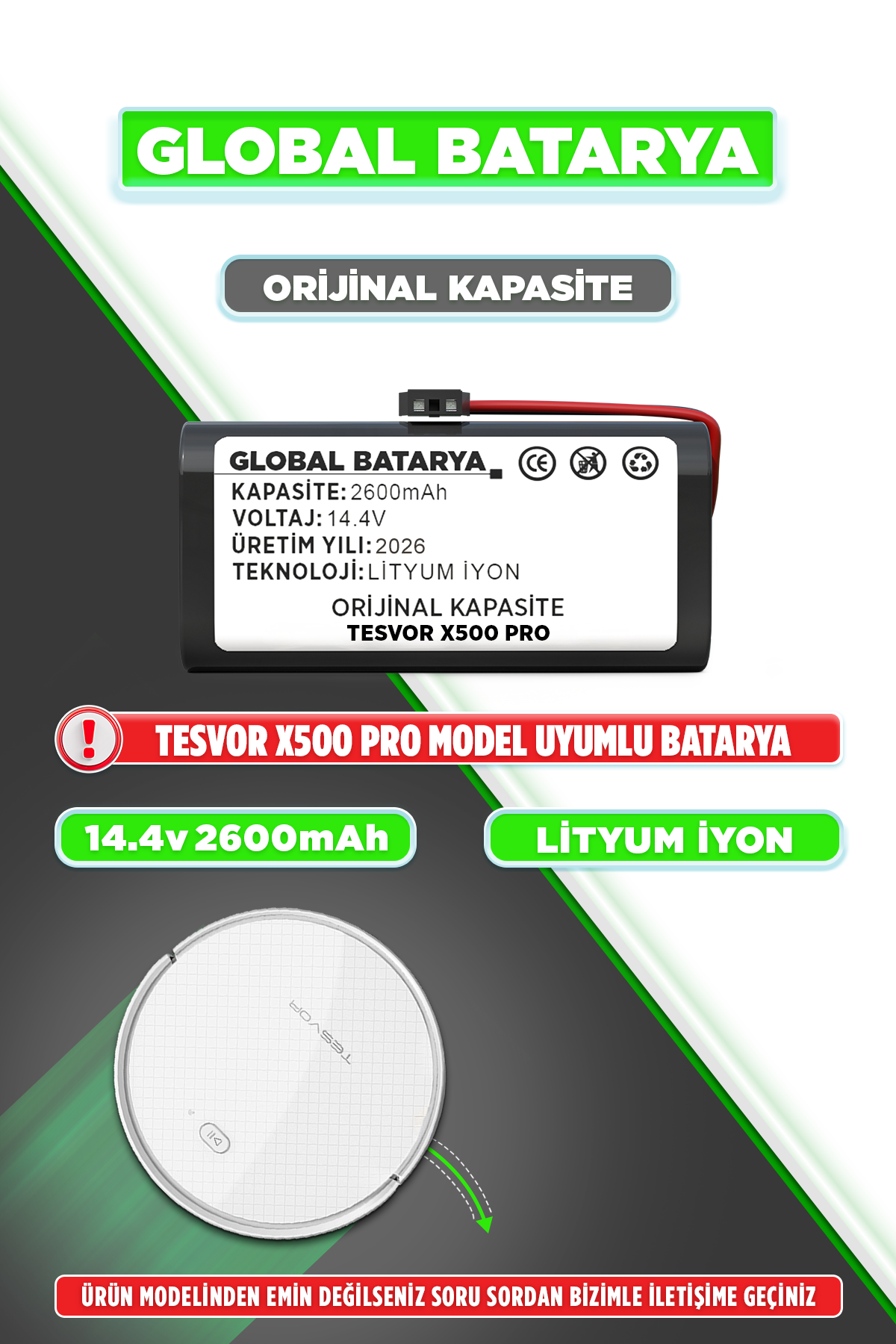 Tesvor X500 Pro robot süpürge bataryası, gelişmiş lityum-iyon teknolojisiyle üretilmiştir. Tesvor X500 Pro uyumlu batarya, dayanıklı ve uzun ömürlüdür. Tüm ürünler, firma tarafından test edilerek satışa sunulmaktadır. Bataryalarımız 6 ay garanti kapsamındadır ve garanti, satıcı firma tarafından sağlanmaktadır.