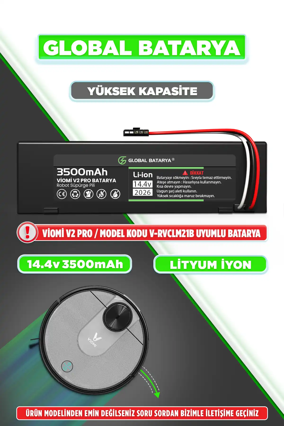 Tam Uyumluluk: Global Batarya güvencesiyle Viomi V2 Pro Batarya, robot süpürgenizle %100 uyumlu çalışarak kesintisiz performans sunar.