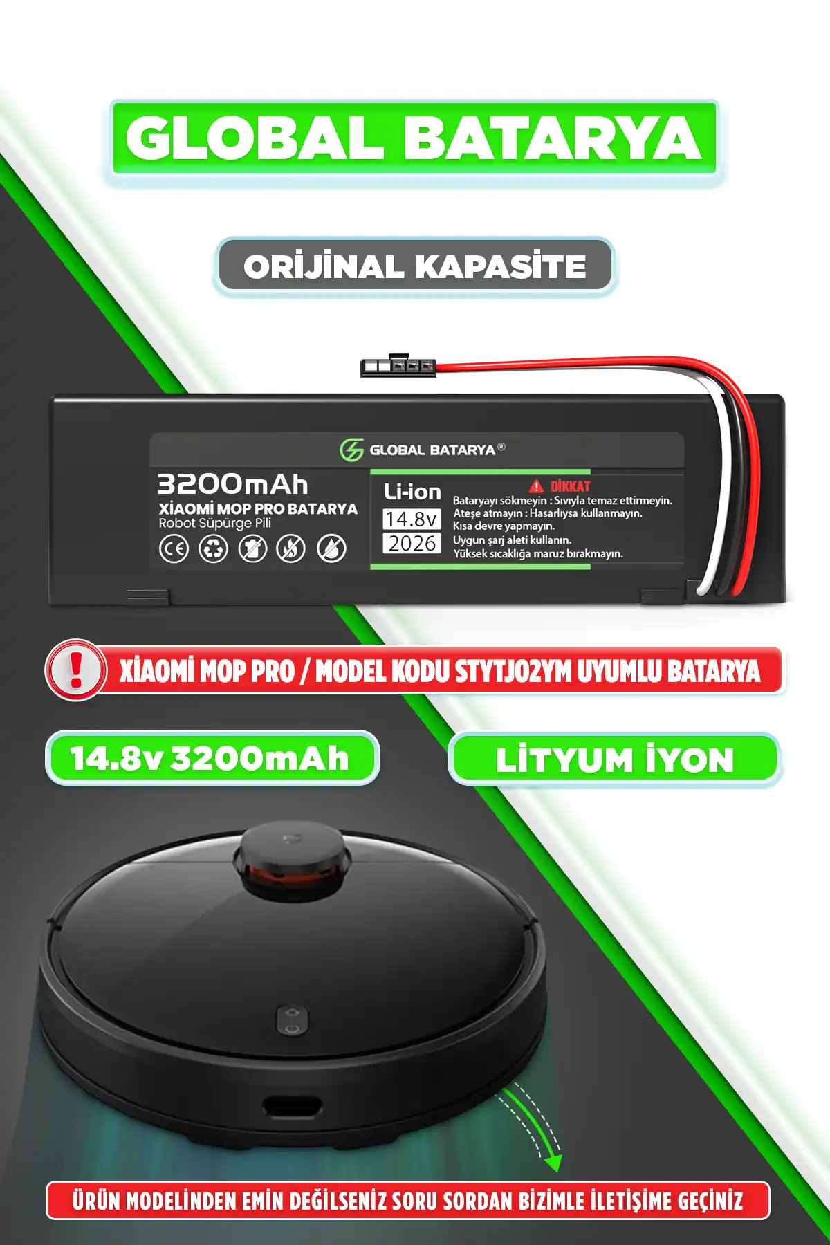 Bu batarya Xiaomi Vacuum Mop Pro akıllı robot süpürge modeline tam uyumludur. Xiaomi Vacuum Mop Pro bataryası lityum iyon teknolojisiyle üretilmiştir. Ürünlerimiz firmamız tarafından test edilerek satılmaktadır. Bataryalarımızın garanti süresi 6 Ay'dır ve satıcı firma garantilidir.